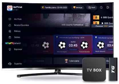 No UniTV net, você tem acesso completo a TV ao vivo (inclusive jogos de futebol brasileiro e programas nacionais), uma grande biblioteca de filmes (lançamentos recentes e clássicos) e animes dos gêneros que você ama — tudo transmitido em qualidade 1080P ou 4K, com imagens nítidas e cores vibrantes. Além disso, o acesso é super fácil: basta fazer login com sua conta, navegar pelas categorias claras ou usar a busca por voz, e começar a assistir em seu celular, TV Box, Smart TV ou tablet — sem complicações, só diversão.